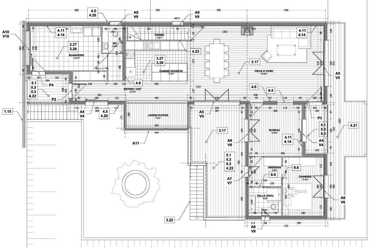 de masse situé dans le salon, qui profite de l’inertie du socle béton